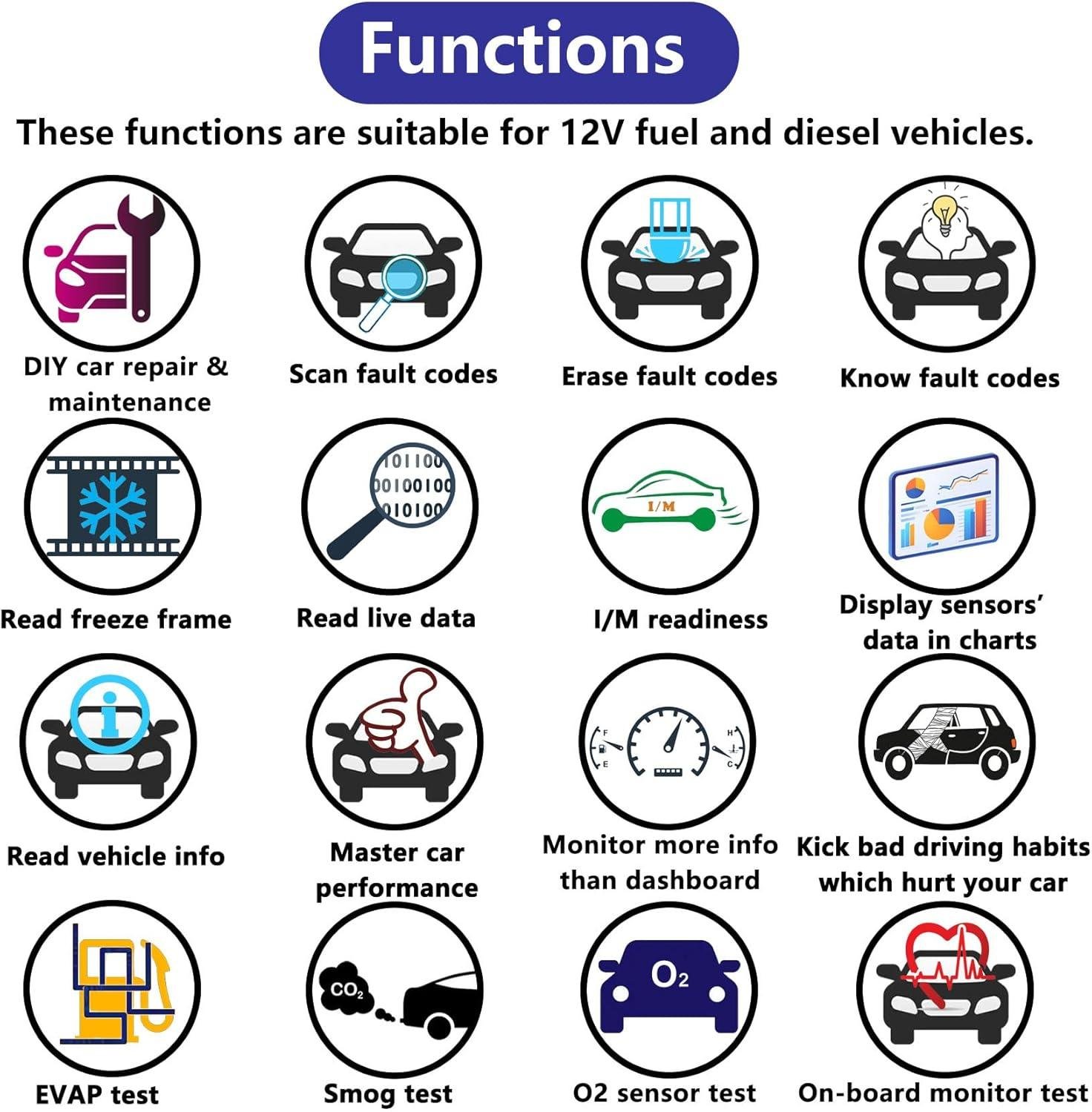 Works with all OBD2-compliant gasoline and diesel vehicles: